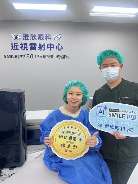 後來聽同事介紹,由「白佳欣眼科」與「澄清眼科醫院」合作成立的「澄欣眼科診所」,上網查詢評價後發現醫師團隊都相當優秀,擁有豐富的近視雷射與各類複雜眼科手術經驗,因此決定預約諮詢。